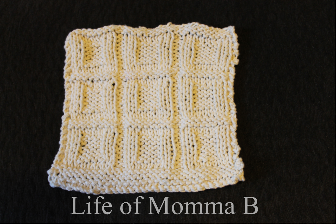 For dishcloth #2 of 12, I opted to use the “Button In A Square” pattern I found at CraftCookie.com