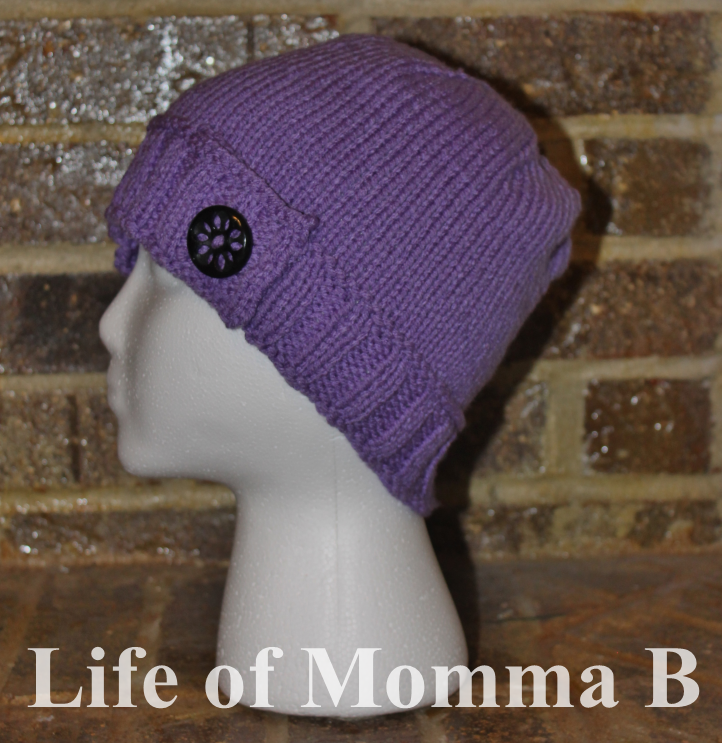 I recently finished knitting up this Button Tab Hat for my niece. I found the pattern for free on I Like Lemons blog.