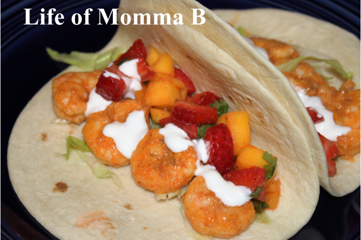 The shrimp cook up quickly which makes for an easy weeknight meal. This pairs well with strawberry mango salsa. The recipe below make enough for 8-10 soft tacos. Here I added lettuce, salsa and sour cream. The only thing that would have made this better was if I had something besides iceberg lettuce in the fridge.