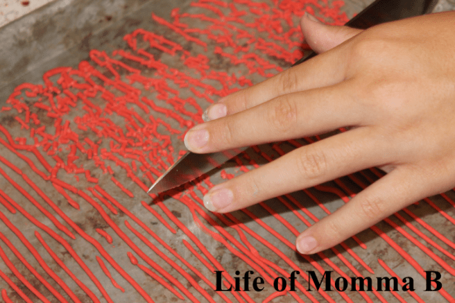 Step four: After the lines have dried, cut them with a sharp knife into little pieces.