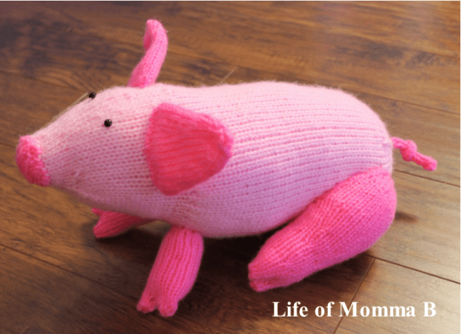 The original pattern used only one shade of pink yarn, but I opted to spice it up just a little. Two different shades of pink made each accent pop. I used size 4 double point needles to knit him up. Small plastic safety eyes were used to finish him off.