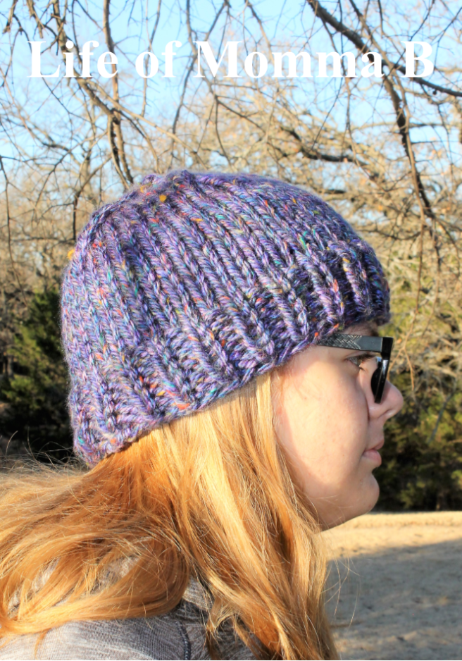 I found a super easy hat by Shaina Billow on Ravelry (here). It features a simple 1×1 rib border and a stockinette stitch body. The pattern is written to be knit flat and seamed, or in the round (I choose to work in the round). It also features two sizes, I opted for the smaller one since teenage girls often have smaller heads.