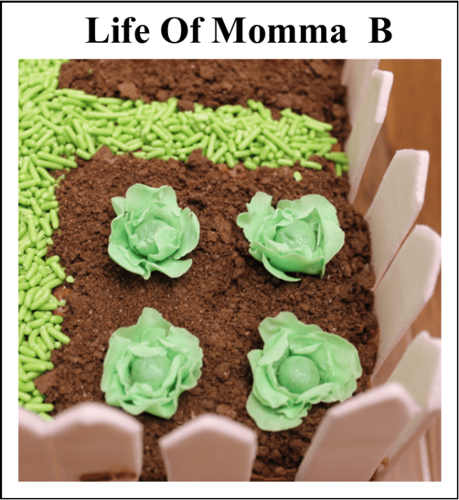My daughter’s green thumb did not come from me. I think she inherited it from her great-grandmother (that gene definitely skipped a few generations). She has a passion for anything green. So when she requested a garden cake, I was happy to oblige. This is the closest I will ever get to a weed-free garden full of goodies.