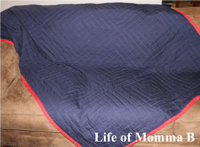 This quilt was a birthday present for my son. But I ran out of time. I managed to complete about 70% of the hand quilting. However, my son loved his blanket and was not willing to give it up for me to finish it. YEARS went by and I forgot that it was not complete. Shortly before Gary joined the Army he brought the quilt to me. He had managed to tear the fabric backing where there was no quilting. So I promised I would redo his quilt for him.