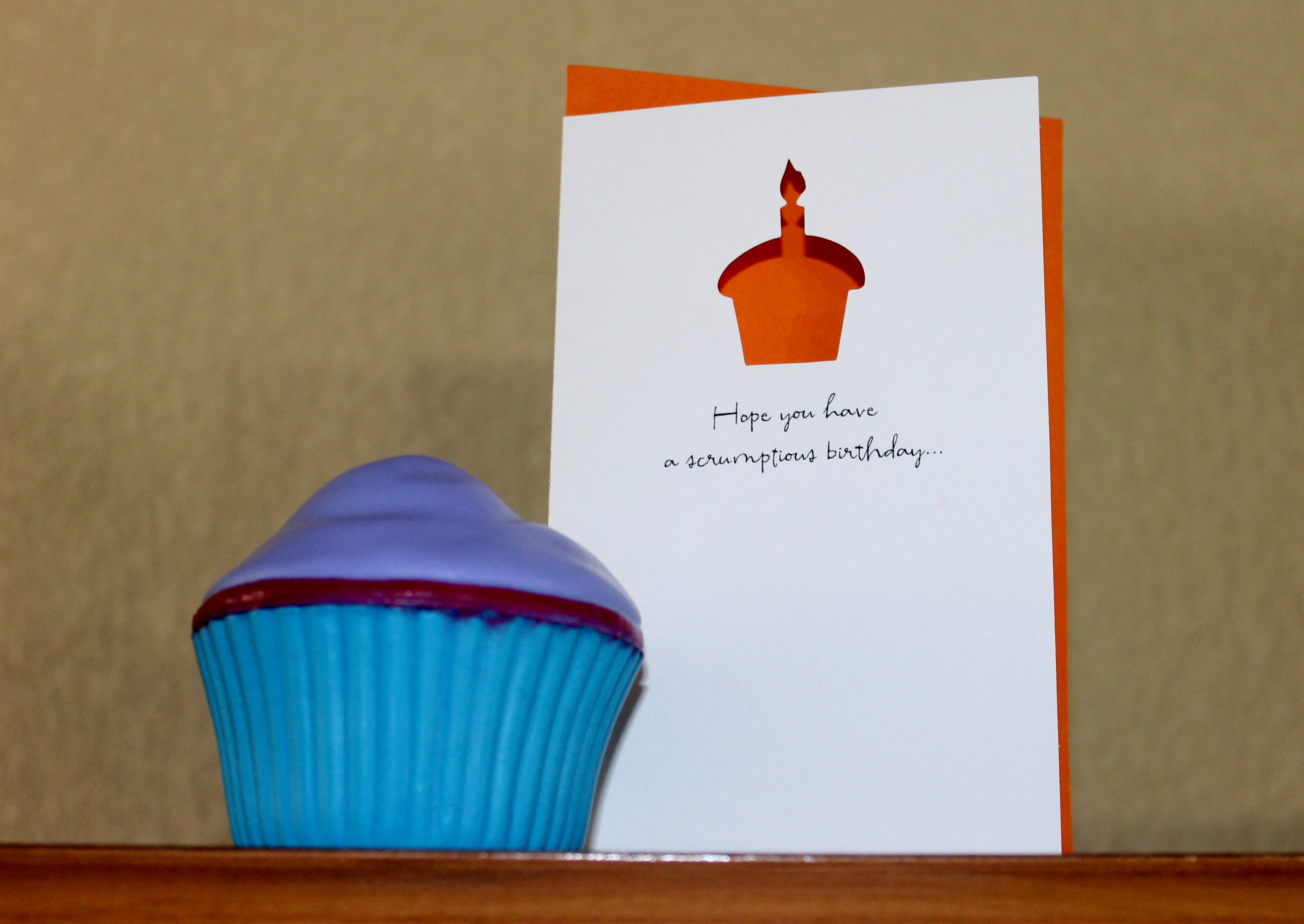 On October 1st, I received a cupcake-shaped stress ball. While it does not seem like much, it is supposed to help me cope with the stress of finding a new house, I was actually quite impressed with my husband. The card, banner and table top display were all cupcake themed. And he bought mini-chocolate cupcakes from a local grocery.