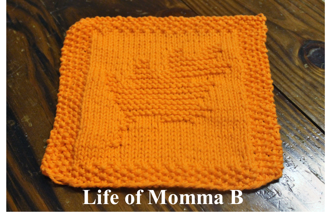 I found this free pattern written by Marilyn Wallace on the Knitting Heaven On Earth website. Of course I used my favorite size 6 needles. For each cloth I used less than 60 yards of Peaches & Creme 100% cotton Bright Orange yarn.